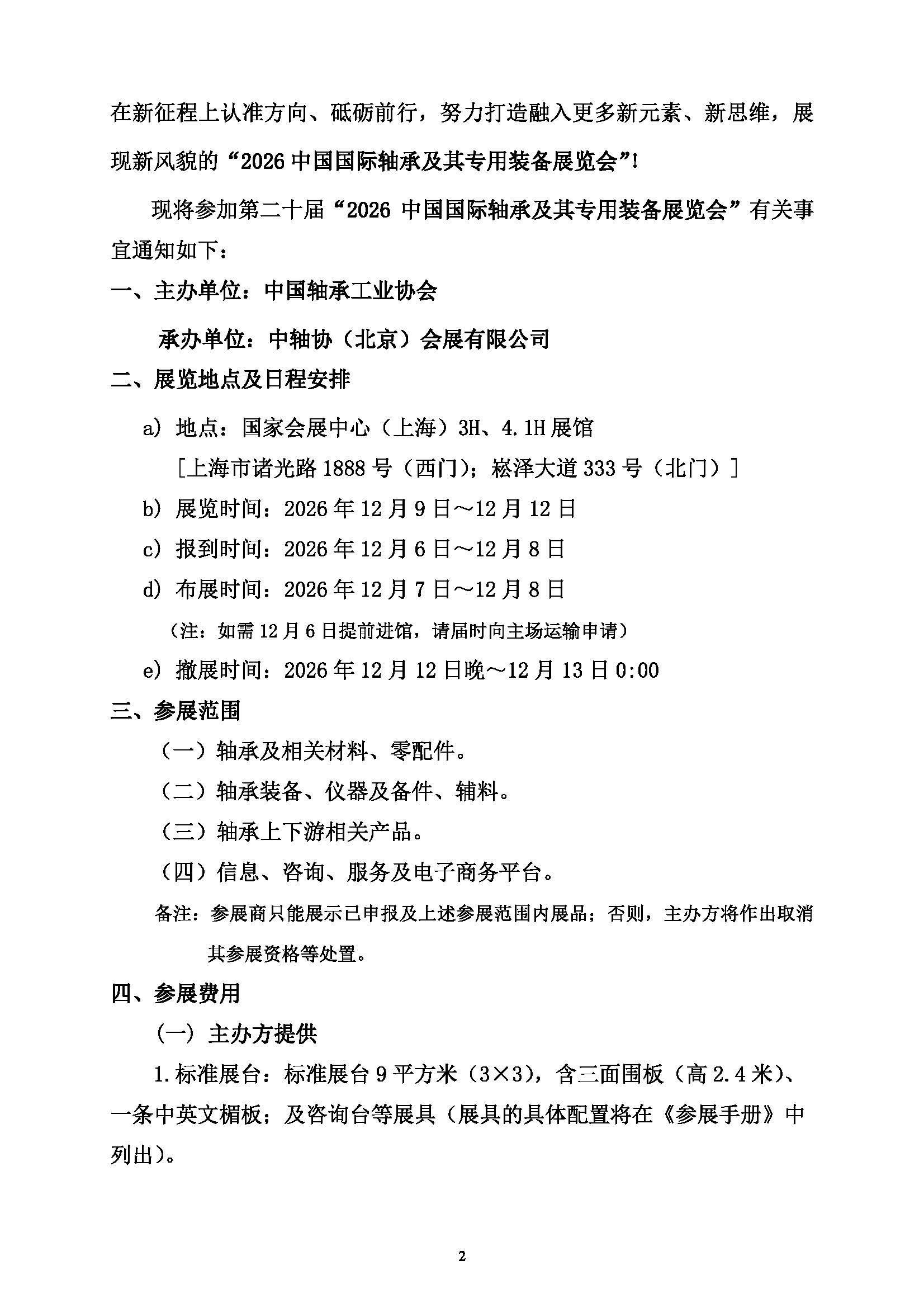 关于邀请参加第二十届“2026 中国国际轴承及其专用装备展览会”的通知