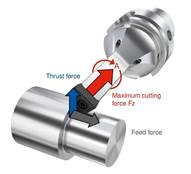 传统车削工艺中,每个轮廓需要不同的刀具去加工。这会产生巨大的刀具成本和较长的刀具更换时间。采用高动态车削(HDT)技术,FreeTurn刀具可以利用铣削主轴实现全方位自由度。切削刃可以通过刀具轴线的旋转来改变主偏角,从而节省刀具数量,减少换刀时间,进给率可提高40%,空走刀行程减少90%,加工时间可减少25%。